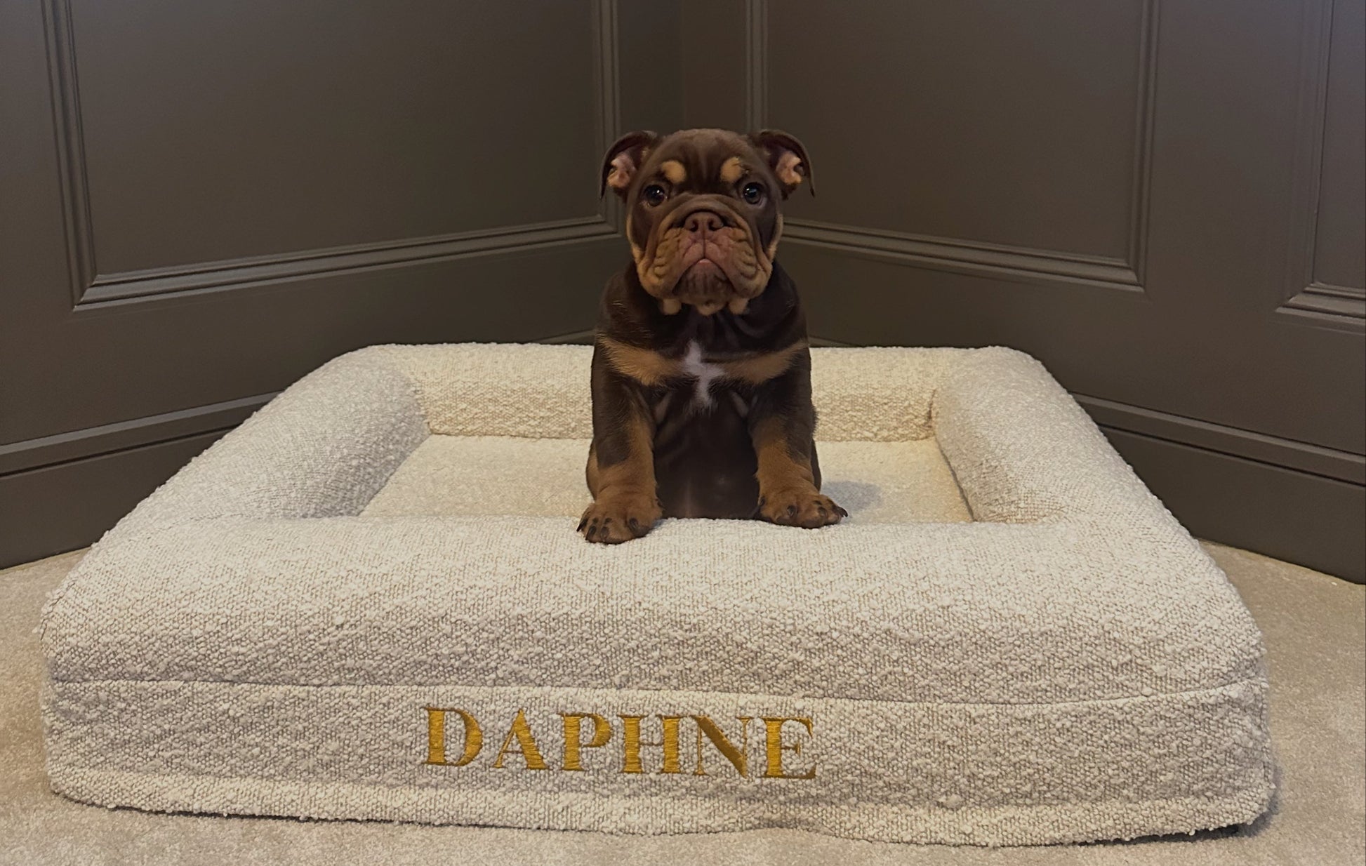 Personalised Oatmeal Traditional Luxury Orthopaedic Personalised Bouclé Dog Bed