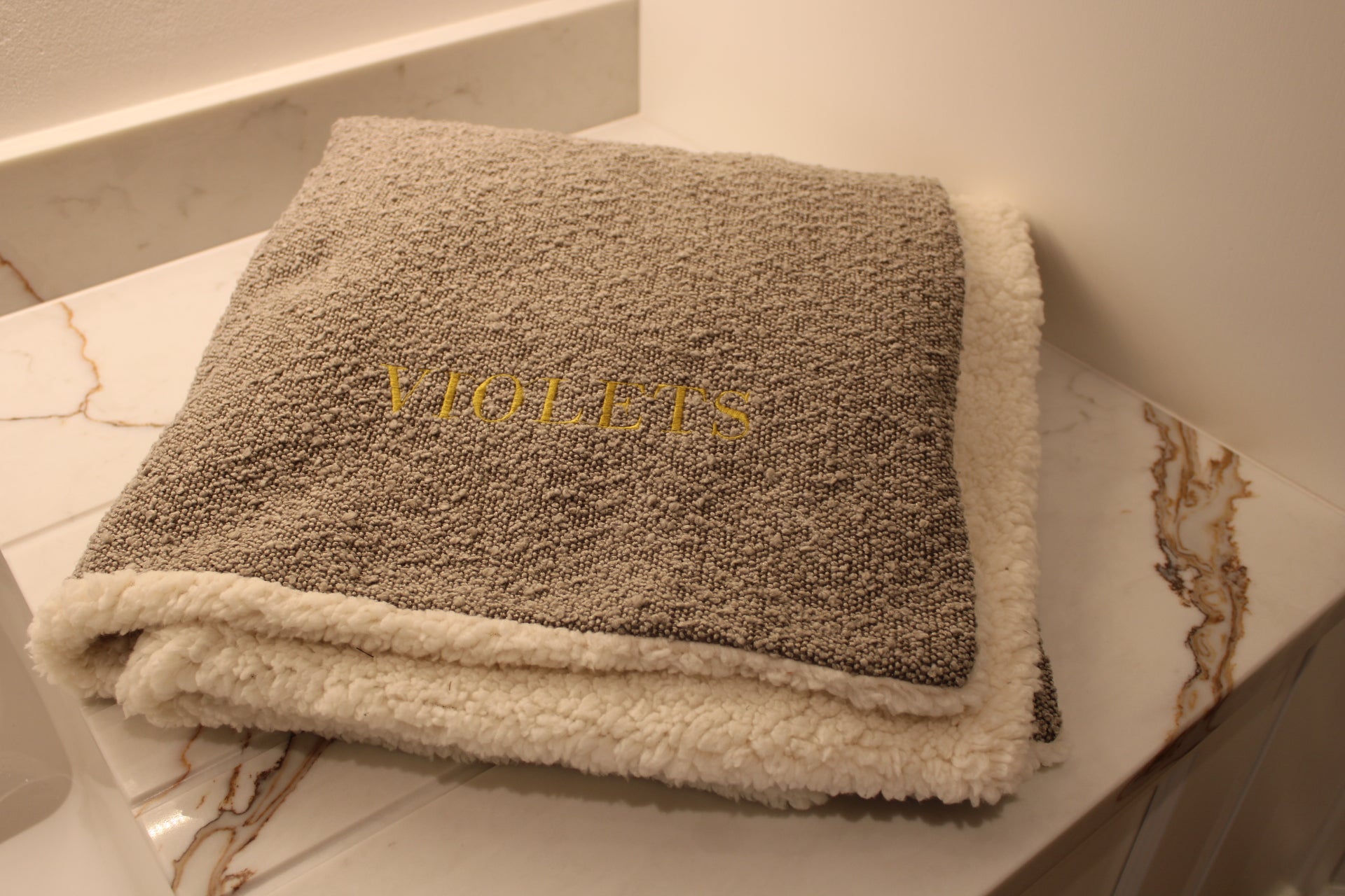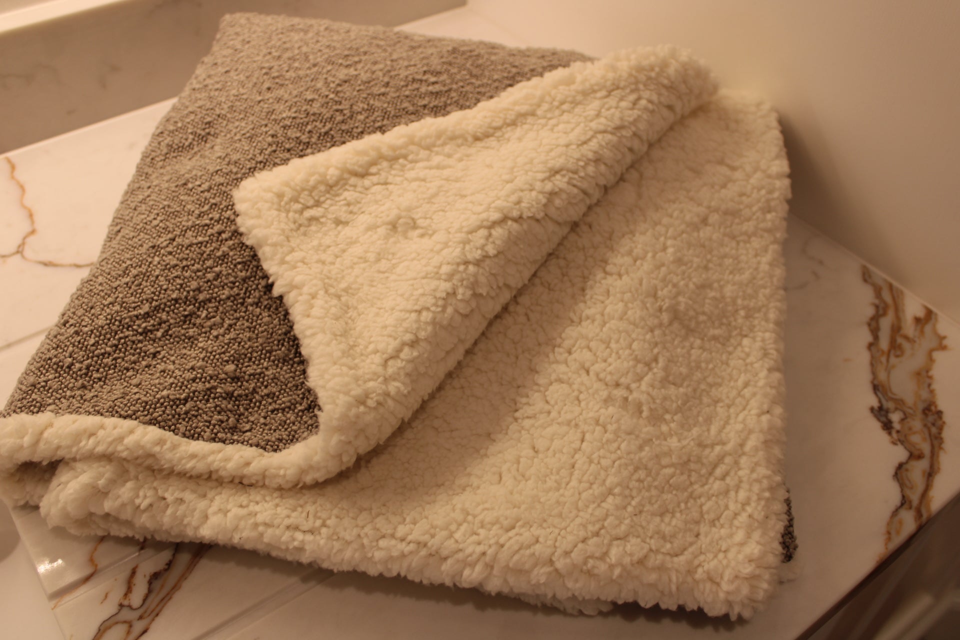 Keep your dog cosy with our soft reversible blankets. One side is made with a textured bouclé fabric to match our beds, and the other with fluffy sherpa fleece — perfect for snuggles.